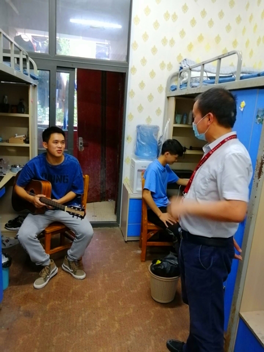 6月9日傍晚,公司党委副书记朱吉韬、辅导员陶朝英到员工公寓翠竹苑2栋寝室走访看望2019级员工。
